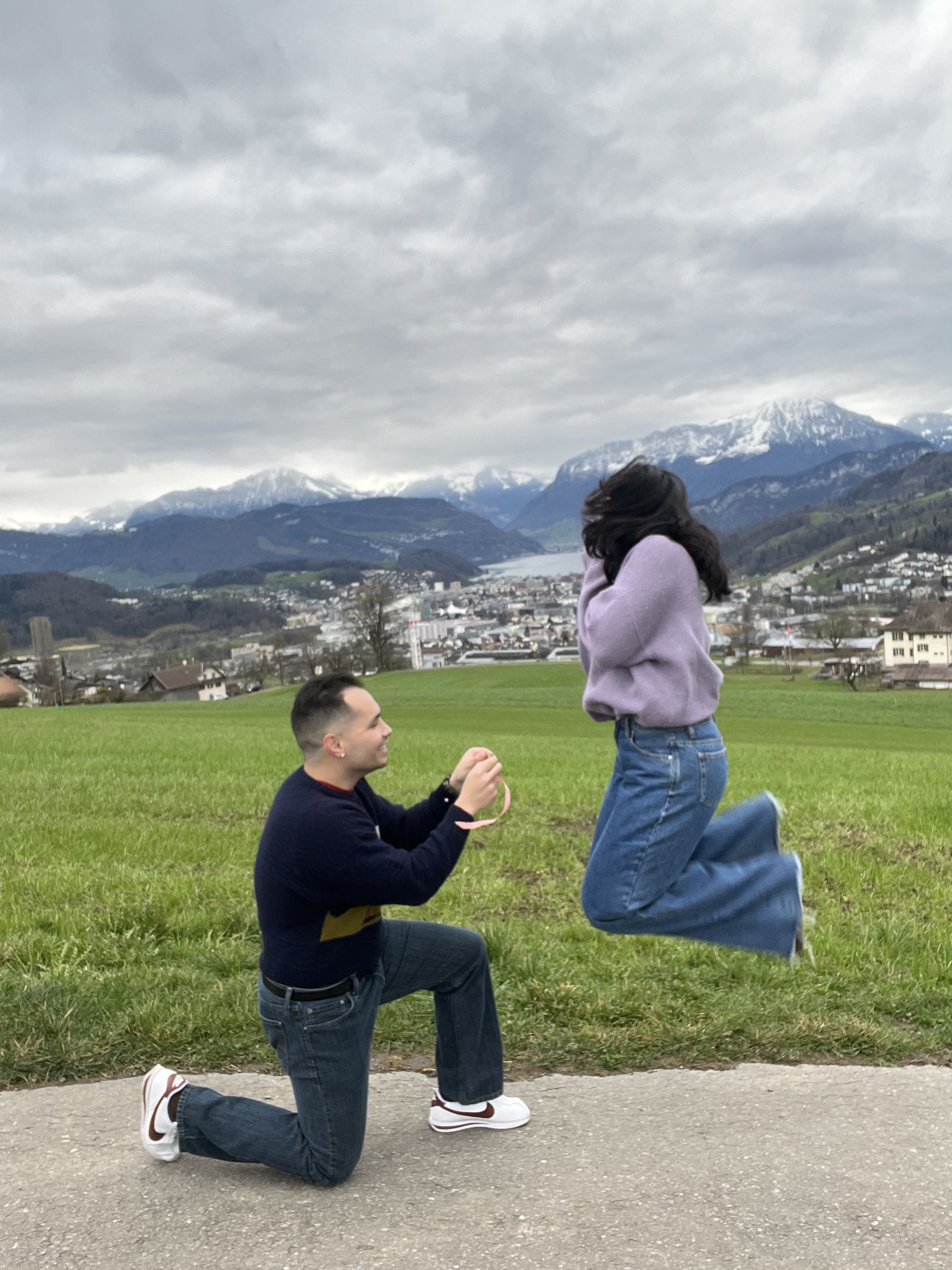 In March 2025, while traveling through the valleys of the snowcapped mountains in Switzerland, Christian popped the question in the picturesque village of Lucerne. With a hop of excitement and a tearful “Yes!” their love was immortalized in a ring that promised a loving future together forever.